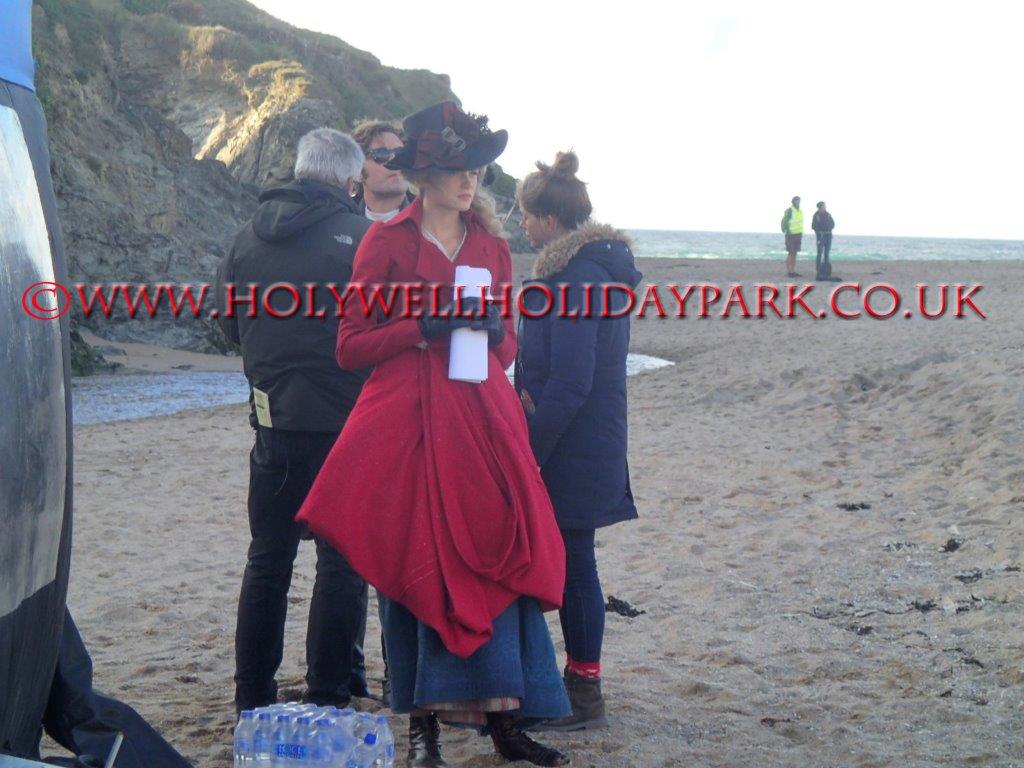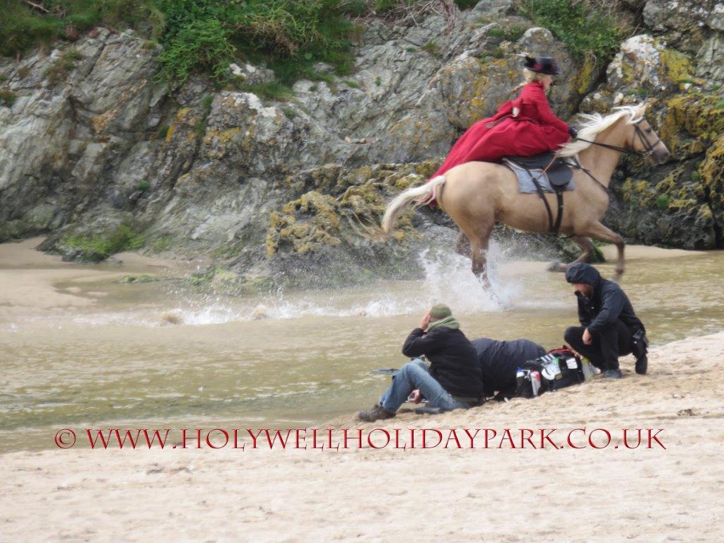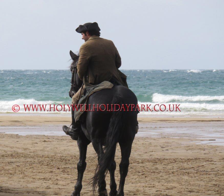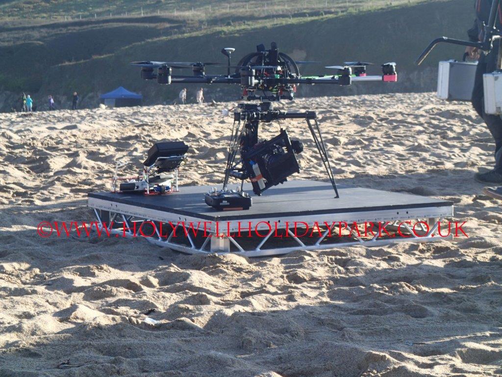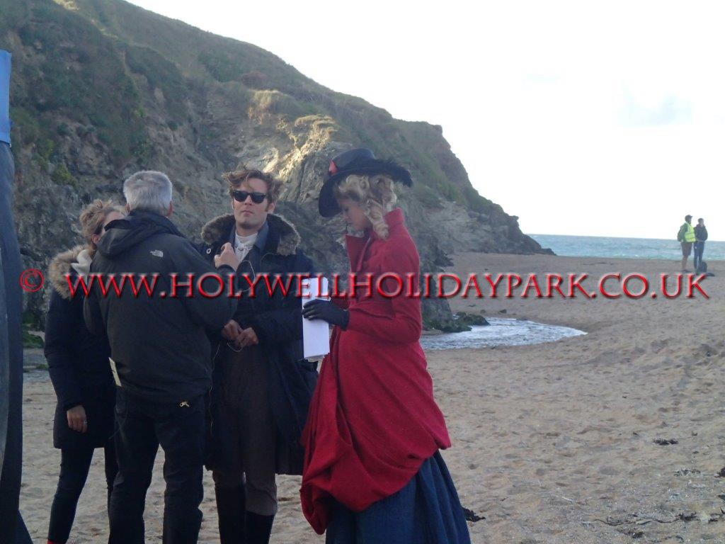 Aiden Turner as Ross Poldark. Luke Norris as Dr. Dwight Enys and Gabrielle Wilde as Caroline Penvenen were all on Holywell Bay Beach, Newquay, filming Poldark series 2. “The Drone” with all its cameras they say cost in the region of £50,000.